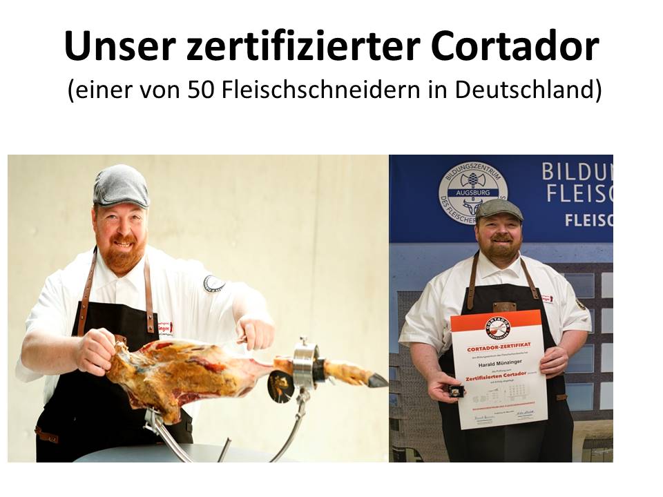 Der aus Spanien stammende Begriff „Cortador“ wörtlich übersetzt mit Schneider/Cutter ist weit mehr als nur ein Schinken-Aufschneider von ganzen Keulen. Er ist DER Schinkenspezialist schlechthin. Keiner kennt das Produkt und seine Eigenschaften besser, keiner weiß mehr über Herkunft, Rasse, Lagerung, Reifung und Zubereitung der edlen Keulen.